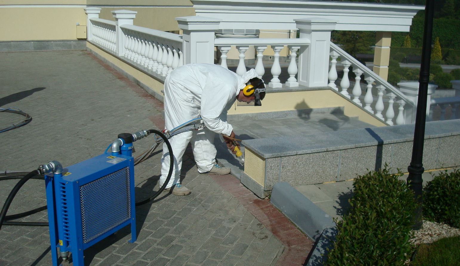Не стенами и потолками едины, нужно и под ноги смотреть. Последствия строительно-ремонтных работ и естественные загрязнения на плитке, мраморе тоже нуждаются в очистке. Пескоструйная обработка - грубый способ и нанесет непоправимый вред покрытию. Так что... снова мягкий бластинг в деле. Приведем в порядок лестничные группы, очистим плитку тротуаров и пешеходных дорожек, наведем красоту на мраморе.